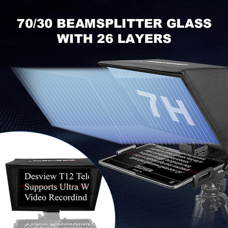 Glass with multi-layer coating for no light loss, Desview T12 teleprompter kit gives highest definition prompting,